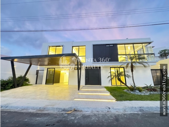 Casa en venta en Manta Beach, sur de Manta. Ubicada en urbanización privada, esta casa nueva ofrece 340 m² de terreno y 301 m² de construcción, con espacios amplios, cocina con isla y patio con área de BBQ para disfrutar en familia. Para más información o agendar una visita, completa el formulario o llama a Jennifer al +593 982 525 862.