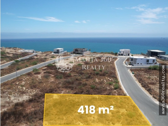 En una de las urbanizaciones frente al mar más exclusivas del sur de Manta, se ofrece este lote de 418 m² con frente de 15 m y topografía plana, ideal para un proyecto residencial eficiente y de alta plusvalía.
